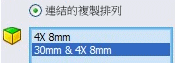 當特徵類型為連結的複製排列時,選擇清單就會包含其定義中所用的 SolidWorks 特徵。