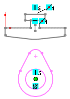 Use the Make Path tool to create machine design layout sketches. For example, you can model cam profiles where the tangent relation between the cam and a follower automatically transitions as the cam rotates. A path enables you to create a tangent relation between a chain of sketch entities and another sketch entity.