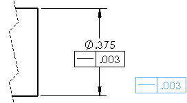 You can place geometric tolerancing symbols, with or without leaders, anywhere in a drawing, part, assembly, or sketch, and you can attach a symbol anywhere on a dimension line.