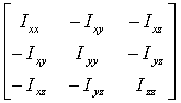 The results are displayed in the Mass Properties dialog box, and the principal axes and center of mass are displayed graphically on the model. The moments of inertia and products of inertia are calculated to agree with the following definitions: