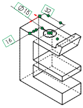 Hole creates various types of hole features in the model. You place a hole and set a depth on a planar face. You can specify its location by dimensioning it afterwards.