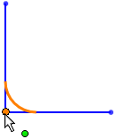 The Sketch Fillet tool trims away the corner at the intersection of two sketch entities to create a tangent arc. This tool is available for both 2D and 3D sketches. The
