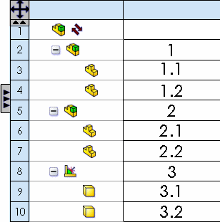 1. Click the left side of the BOM table to display the assembly structure column in the BOM if it is hidden.