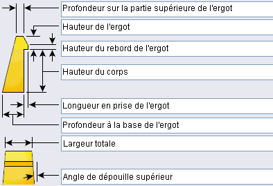 Entrez la hauteur du corps. Active les paramètres de Hauteur du corps sous Données de l'ergot de fixation. Permet de définir la hauteur de l'ergot de fixation à partir de l'entité sélectionnée dans Sélectionnez une position jusqu'au dessous du rebord de l'ergot.