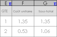 Les équations dans les cellules ou les colonnes sont indiquées par un symbole d'équation.