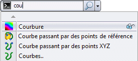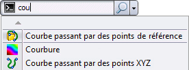 Si vous exécutez Courbe passant par des points de référence à partir de la liste des résultats, la commande apparaît en haut de la liste lors de la prochaine recherche avec cou.