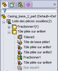 Vous pouvez créer une pièce de tôlerie à corps multiples à l'aide de toute commande qui crée des corps multiples à partir d'un seul corps.