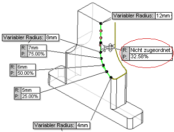 Sie können Radiuswerte zu einer beliebigen Anzahl von Steuerpunkten hinzufügen oder sie als nicht zugewiesen belassen.