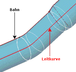 Der ausgetragene Körper wird an allen Stellen segmentiert, an denen die Leitkurve oder die Bahn keine durchgehende Krümmung aufweist (siehe Beispiel unten). Deshalb stimmen die Linien und Bogen in den Leitkurven genauer überein.