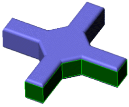 Die Flächen werden gelöscht, und die angrenzenden Flächen werden verlängert, so dass sie eine durchgehende Oberfläche bilden.