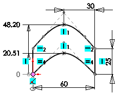 Verwenden Sie Bemaßungen und Beziehungen, die von der SolidWorks Anwendung berechnet werden, um Skizzen oder ausgewählte Skizzenelemente vollständig zu definieren.