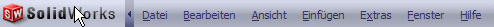 Die Menüs werden eingeblendet, wenn Sie den Cursor über das SolidWorks Logo bewegen oder darauf klicken. bsp;Sie können die Menüs auch mit dem Stecknadelsymbol anheften, um sie jederzeit sichtbar zu haben. Wenn die Menüs angeheftet sind, wird die Symbolleiste nach rechts verschoben.