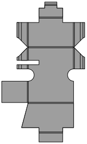 Wenn Sie das Kontrollkästchen Flächen verschmelzen aktivieren, werden keine Linien in den Biegebereichen der Abwicklung angezeigt. Im folgenden finden Sie ein Beispiel für verschmolzene Flächen: