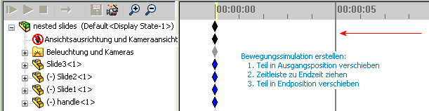 Ziehen Sie von einer Bewegungsstudie die Zeitleiste, um die Dauer der Bewegungssimulationssequenz festzulegen.