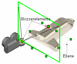 • Der Kameraschlitten ist ein Modell eines Raumschiffes mit einer Linie (verdeckt) und einem Punkt.