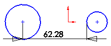 Standardmäßig werden Abstände zum Mittelpunkt eines Kreisbogens oder Kreises gemessen. Mit dem Werkzeug Intelligente Bemaßung