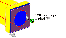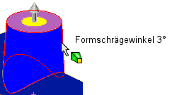 Die Farbe des kreisförmigen Innenbereichs wird geändert, um die Formschräge von 3 Grad widerzuspiegeln. Im Cursor-Feedback wird der Formschrägewinkel bestätigt.