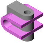 mit der Option Gemeinsam. Mit der Körperüberschneidungs-Methode können Sie komplexe Teile schnell in wenigen Schritten erstellen und dadurch möglicherweise Leistungssteigerungen erzielen. Den Ausgangspunkt bilden mehrere Volumenkörper, die sich überschneiden, und als Ergebnis bleiben lediglich die sich überschneidenden Volumina der Körper übrig. Bei den meisten Modellen, die mit zwei oder drei Zeichenansichten vollständig dargestellt werden können, kann diese Methode verwendet werden, indem man entweder zwei oder drei linear ausgetragene Volumenkörper zum Überschneiden bringt. Die Skizzen der linearen Austragungen sind die durchgehenden Linien, die in den zwei oder drei Ansichten dargestellt werden. Im folgenden Beispiel wird diese Methode durch die Überschneidung von zwei linearen Austragungen veranschaulicht.