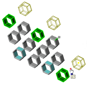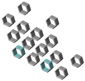 Bei Mehrkörper-Teilen können Sie ein Muster erstellen, das einige oder alle Mehrkörper-Teile enthält, die Sie zum Erstellen des Original-Mehrkörper-Teilmusters verwendet haben. Sie können ein beliebiges Muster (wie z. B. lineares, kreisförmiges oder skizzengesteuertes Muster) verwenden. Die Optionen, die bei einzelnen Körpern zur Verfügung stehen, stehen ebenfalls für Muster von Mustern bei Mehrkörper-Teilen zur Verfügung. Sie können z. B. mehrere Richtungen verwenden oder referenzierte Kopien umgehen.