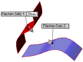1. Klicken Sie auf Flächen-Satz 2, und wählen Sie im Grafikbereich die zweite Fläche zum Verrunden aus. Falls nötig, klicken Sie auf Flächensatz umkehren , damit die Pfeile aufeinander zeigen.