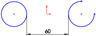 Um sowohl die Erste Kreisbogenbedingung als auch die Zweite Kreisbogenbedingung im PropertyManager Bemaßung anzuzeigen, wählen Sie die Kanten beider Bögen mit dem Werkzeug Intelligente Bemaßung