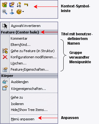 Möglichkeiten zur Anpassung des Menüs.