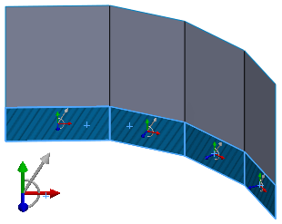 Das Modell besteht aus zwei Schalen mit je vier Flächen. Um die Materialausrichtungen konsistent über alle Flächen und Schalen festzulegen, wählen Sie einen Lagenwinkel von 60 Grad in der Tabelle Verbundstoff-Schalenlagen aus.