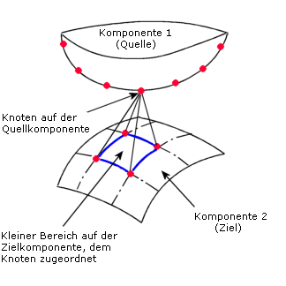 • Für alle Knoten auf der Quelle weist die Software eine oder mehrere Elementflächen auf dem Ziel zu.