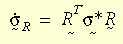 Als Spannungsrate wird die Green-Naghdi-Rate verwendet, damit das konstitutive Modell entsprechend rahmen-invariant oder objektiv wird. Durch Umwandeln der Spannungsrate aus dem globalen System in das R-System,