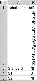 Beispiel für eine Tabelle die den Unterdrückungsstatus einer Gleichung steuert: