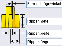 bsp;Rippenbreite definiert die Dicke an der Basis der Rippe vor dem Anwenden einer Formschräge.