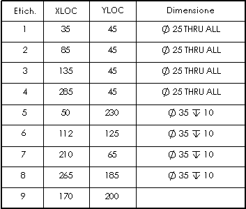 Abbina stesse etichette. Abbina le file con i fori nella stessa ripetizione, che associa inoltre i fori con la stessa dimensione. Le colonne dei valori di posizione vengono rimosse. Questa opzione rimuove le colonne di ubicazione X LOC e Y LOC.