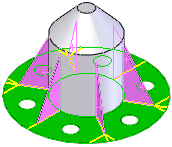 proietta un'entità (schizzo, solido, superficie, faccia, piano o spline di superficie) su facce curve o piane. Divide una faccia selezionata in multiple facce separate. Dividere le curve su più corpi con un solo comando. Si possono creare le seguenti linee di divisione:
