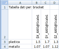 Le intestazioni di colonna per il controllo dei fattori X, Y e Z di una funzione di scala utilizzano questa sintassi: