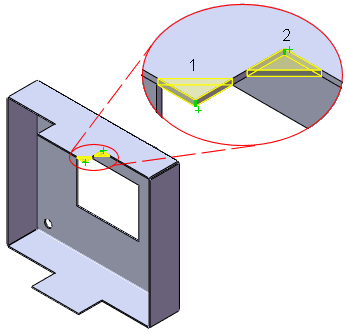 ブレーク コーナー/コーナー トリム (Break Corner/Corner-Trim)ツールは、フォールドした板金部品のエッジや面から材料を切り落とたり、加えたりします。