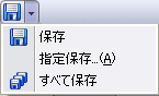 ツールボタンの隣りの下向き矢印をクリックすることにより、追加の機能でフライアウトメニューを表示するためにそれを展開することができます。これは、ツールバーから大部分のファイルメニューコマンドにアクセスできます。例えば、保存(Save) フライアウトメニューは、保存(Save)、指定保存(Save As)、すべて保存(Save All)を含みます。