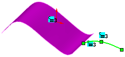 2D または 3D のスプラインと隣接する面との間に面に 正接 (Tangent Face)の拘束や、等曲率 (Equal Curvature)の拘束を追加します。