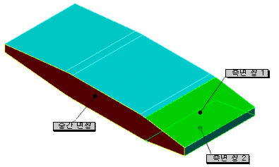 모델의 한 쪽에 둥근 필렛이 적용됨.