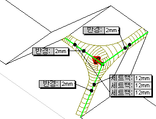 전체 미리보기 와 모든 모서리에 12mm의 동일한 세트백 거리 를 적용한 세트백 필렛 모양