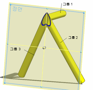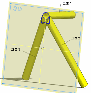 더 낮은 잘라내기 순서 번호가 있는 그룹이 높은 번호가 있는 그룹을 잘라냅니다. 두 그룹에 같은 잘라내기 순서 번호가 있을 경우, 서로 마이터하고 더 높은 번호가 있는 그룹을 잘라내며 더 낮은 번호가 있는 그룹으로 잘립니다.