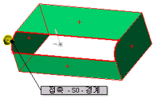 이 불러온 곡면 예제에는 앞면에 틈이 있습니다. 틈이 있는 이 곡면에 패치를 붙이려면, 경계 모서리선마다 다른 유형의 곡률 제어를 적용해야 합니다.