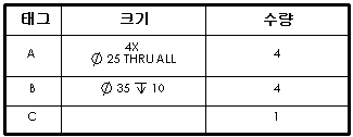 이 옵션을 선택하거나 선택 취소하여 구멍 테이블에서 크기의 표시를 전환할 수 있습니다.