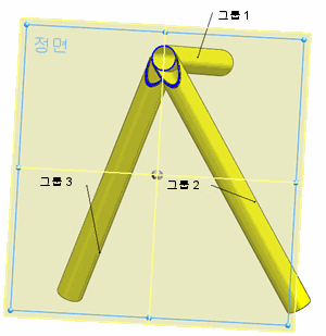 더 낮은 잘라내기 순서 번호가 있는 그룹이 높은 번호가 있는 그룹을 잘라냅니다. 두 그룹에 같은 잘라내기 순서 번호가 있을 경우, 서로 마이터하고 더 높은 번호가 있는 그룹을 잘라내며 더 낮은 번호가 있는 그룹으로 잘립니다.
