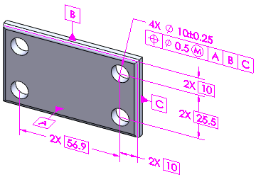기하 위치 공차로 모델을 작성합니다.