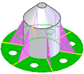 dokonuje rzutowania elementu (szkic, bryła, powierzchnia, ściana, płaszczyzna lub splajn powierzchniowy) na powierzchnie lub ściany zakrzywione lub planarne. Wybrana ściana jest podzielona na wiele oddzielnych ścian. Można podzielić krzywe na wielu obiektach przy użyciu jednego polecenia. Można utworzyć następujące linie podziałowe: