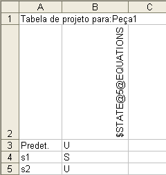 Exemplo de uma tabela de projeto que controla o estado de supressão de uma equação: