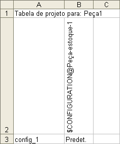 Exemplo de uma tabela de projeto que controla a configuração de uma peça dividida: