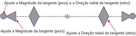 Uma alça de spline contém vários tipos de alças para controlar o peso e a direção (vetor) nesse ponto. É possível controlar o peso e a direção: