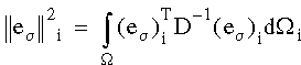 onde D é a matriz de elasticidade e Wi é o domínio do elemento. Uma estimativa de erro global é calculada pela soma dos erros de todos os elementos: