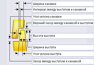 Этот раздел появляется при выборе тел, на которых требуется создать и выступ, и канавку. Задайте параметры, контролирующие выступ и канавку, а также взаимодействие между ними.